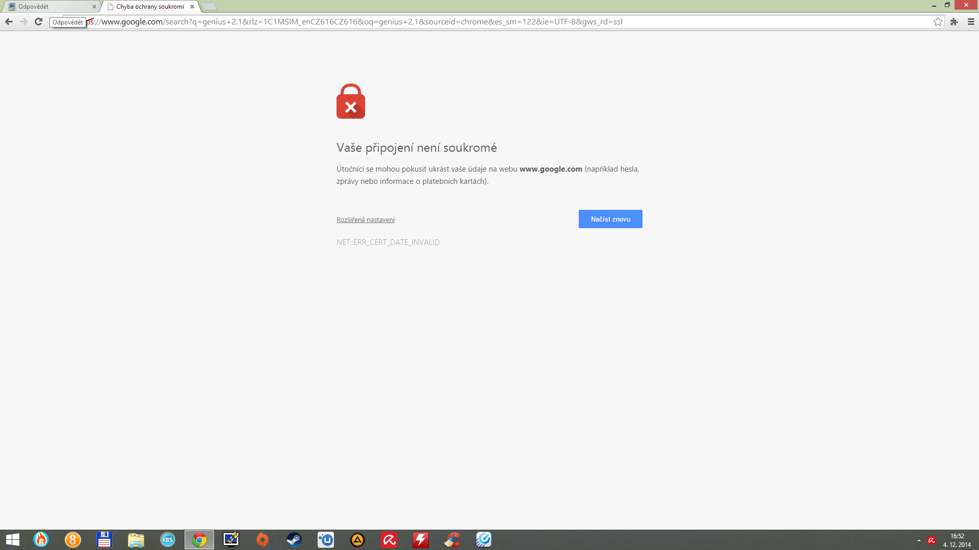 ale když cokoli napíšu v google chrome do adresního řádku objevi se tato hláška.