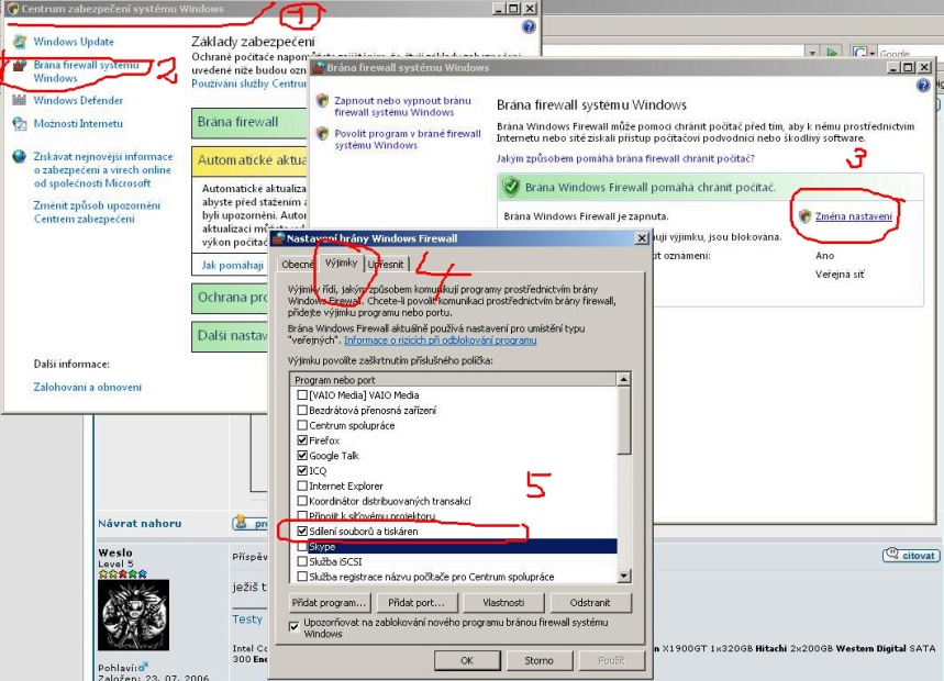 Když to tak sleduji, tak se mi nezdá si že chyba u toho PC s Vistama bude ve Firewallu, za předpokladu že má ve vyjímkách nastaveno .... viz obr. Máš ?