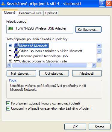 Je to počítač, ne notebook. Když dám ta síťová připojení nemám tam adaptér, ale bezdrátové připojení k síti, když dám Vlastnosti , ale toto: