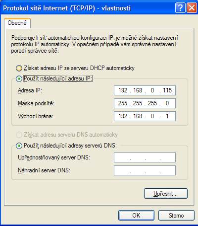 Ještě DNS jsi zapomněl. Asi bude 192.168.0.1 (stejné jako brána)