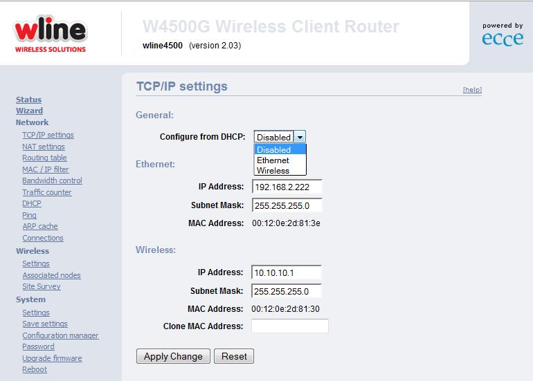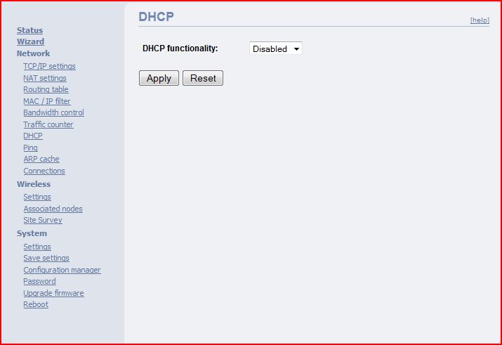 Tady to nech na disabled. Wifi nastavíš ve Wireless-Settings, a DHCP v Network-DHCP. To sem dej ale asi radši screen. A ještě jeden ze Status