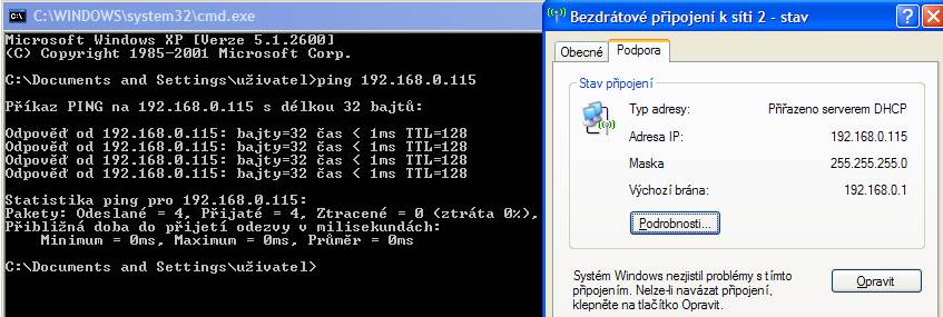 To nechápu. Z toho by vypadalo, že si pingnu, i když nejsem připojen? Pak ještě, že nemám IP adresu dobře, ale to bych si nepingnul na nic, ne? Pro jistotu jsem do toho screenu dal i okno s nastavením.