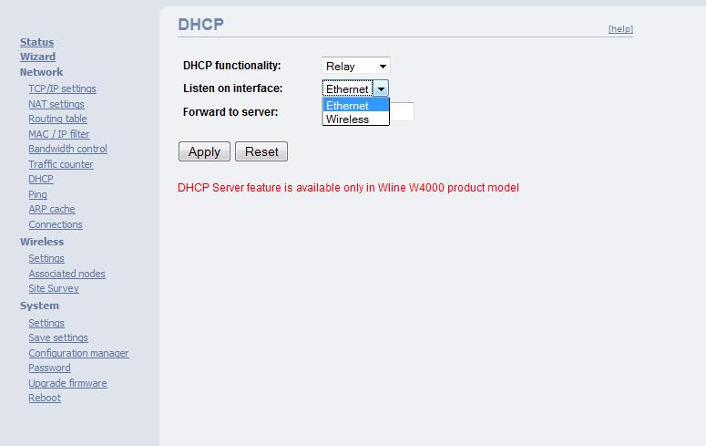 EDIT : to znamená : DHCP Server funkce je k dispozici pouze v produktu W4000 Wline model ? a to mám chápat jak ?