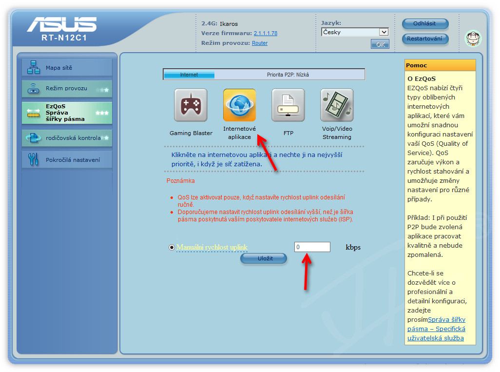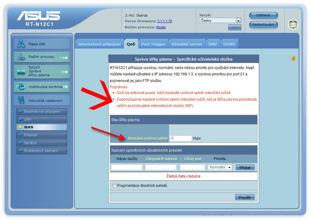 Prosim vas,nevedel by mi niekto poradit aku rychlost uplinku mam zadat pre nastavenie QoS v routeri Asus ? Nastavenie routera je na obrazku a moja namerana rychlost je tiez na obrazku.Za kazdu radu vam vopred velmi pekne dakujem.