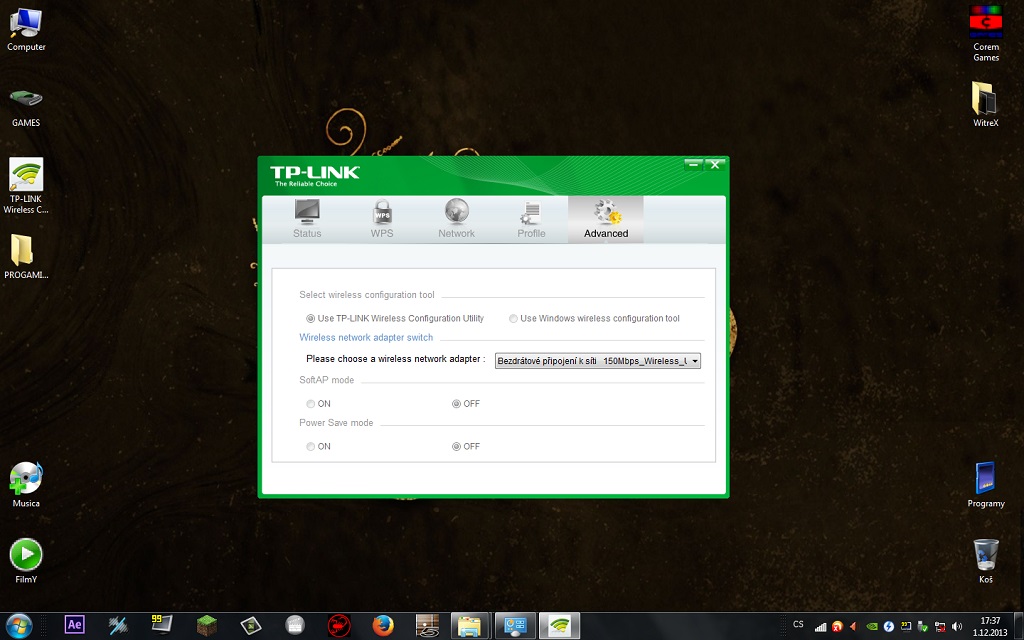 Na Notebooku tento problem nemám tam fungují všechny založky jako (Network,Profile,Status,Wps)