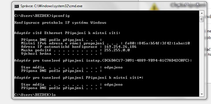 na obrazku je vypis ipkonfigu, kdyz je k pc pripojen router kabelem