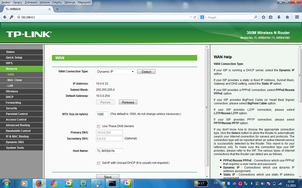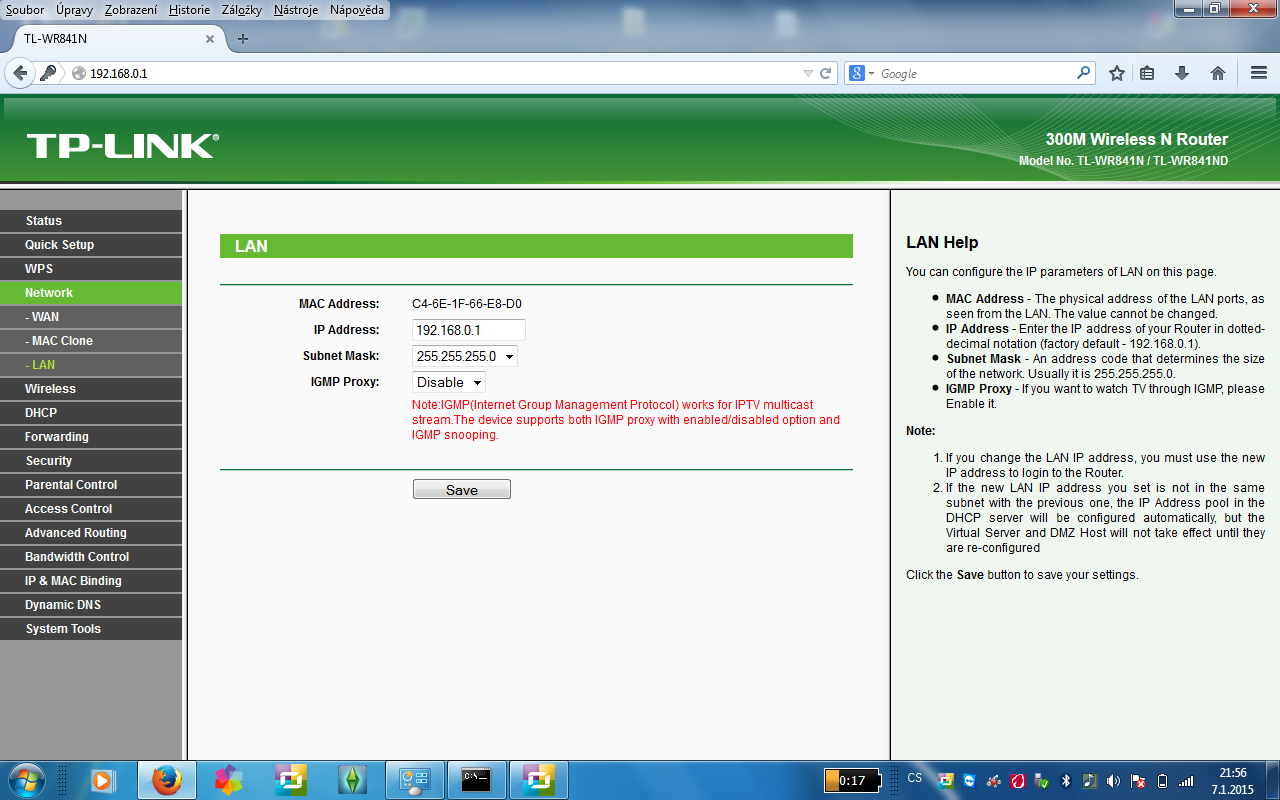 Připojil jsem do LAN a restartoval router a nyní vše šlape