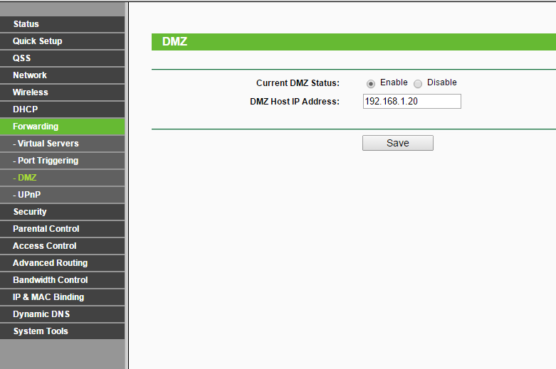 Tuto IP adresu vlož do DMZ v nastavení routeru.
