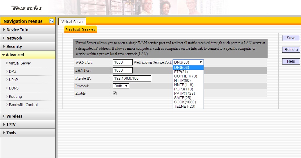 Tak teď jsem zmaten. Na routeru nikde port forwarding nevidím. Tak přes ten virtual server se nedokážu připojit z venku?