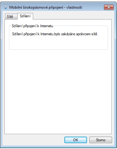 pak koukám ve win7 v nastavení mobilního 3G připojení je v záložce sdílení " Sdílení připojení k internetu bylo zakázáno správcem sítě". Notebook je služební, nevím jak to tam dostali? Žena by se potřebovala připojit vypršel jí mobilní internet. Existuje nějaká možnost jak sdílení internetu aktivovat? Admin práva mám.