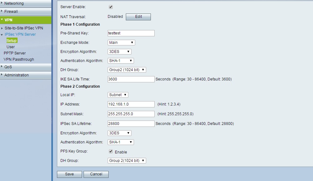 V nastavení protokolu IPSec v pc mám u výměny klíčů i ochraně dat nastaveno SHA-1, 3DES a Diffie-Hellman Group2.