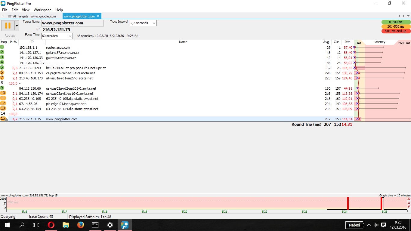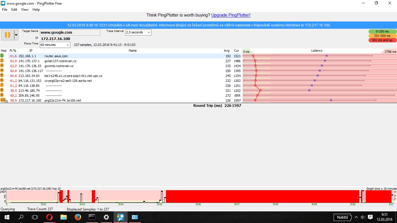 PingPlotter klidně můžeš použít v době výpadku, uvidíme, kam až se dostane.