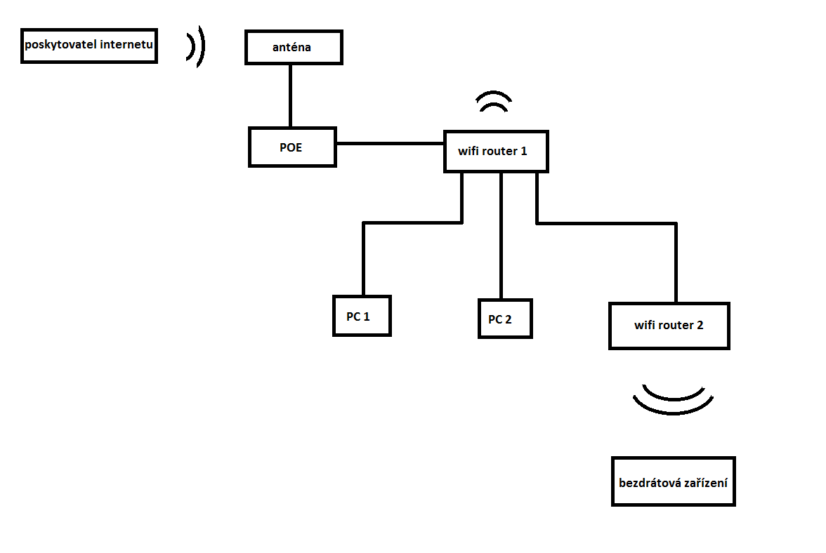 Co vím, tak změnili tedy jen tu krabičku a potom zapojení, dříve byl wifi router 1 zapojen tak, že WAN port byl prázdný, teď tam vede kabel z POE. Měnili taky nastavení wifi routeru 2, ale to by na PC 1 a PC 2 nemělo mít vliv ne?