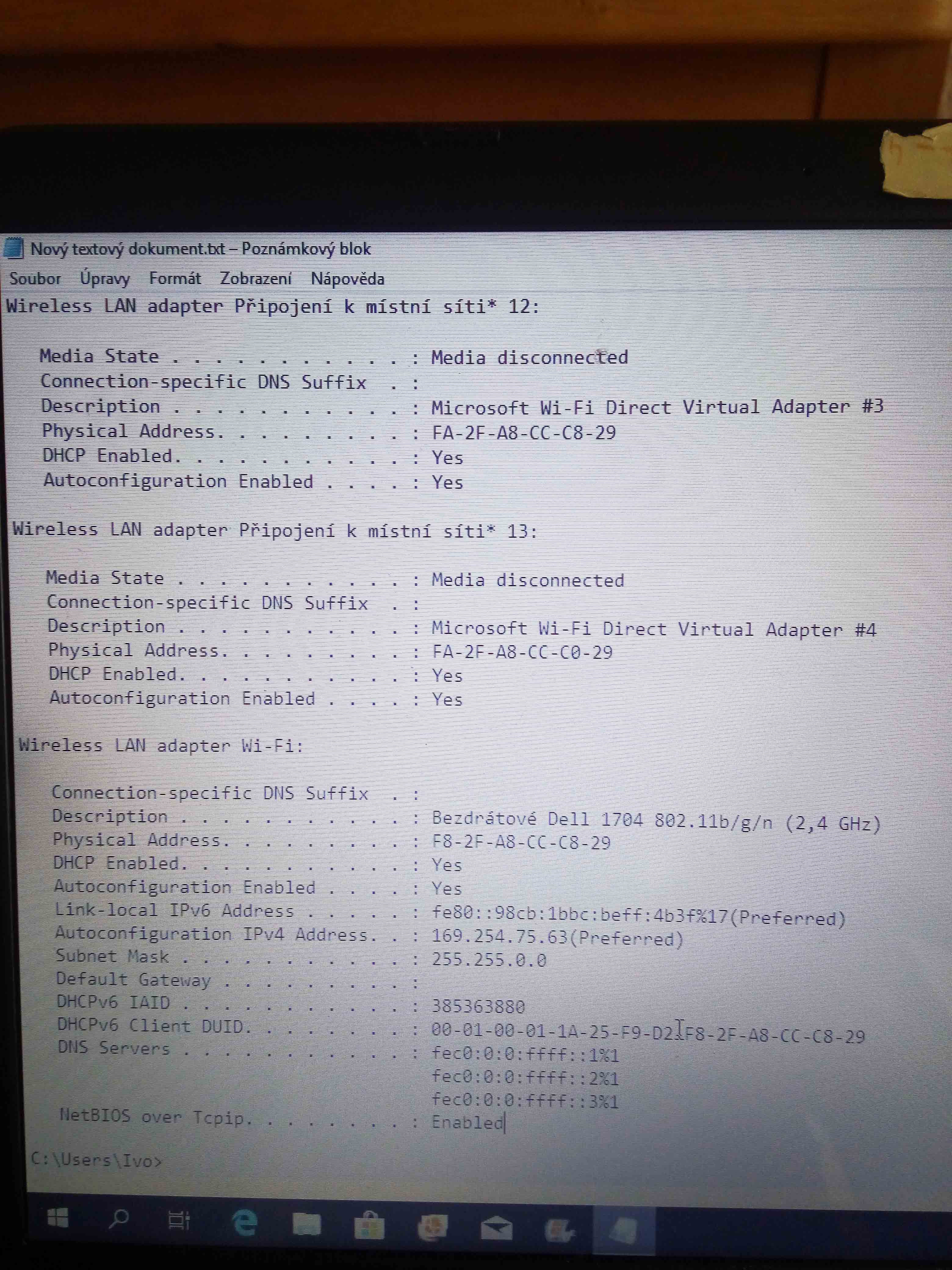 Na jaké údaje nastavit IP adresu staticky? Ipconfig/all mi nepíše ani výchozí branu ani dns server?