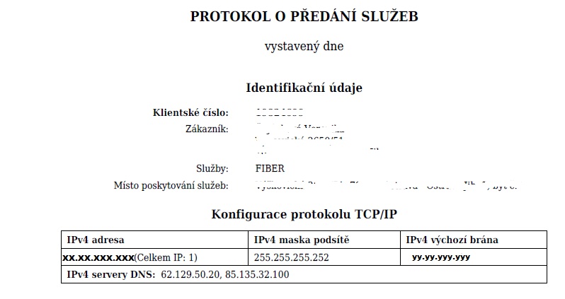 5. servery DNS v kolonce DHCP: primary: 62.129.50.20, secondary: 85.135.32.100