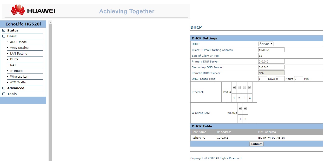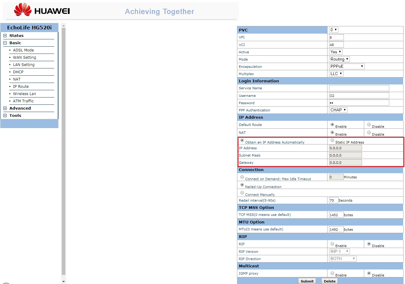 Modem HUAWEI HG520i jako AP - nastavení IP od providera