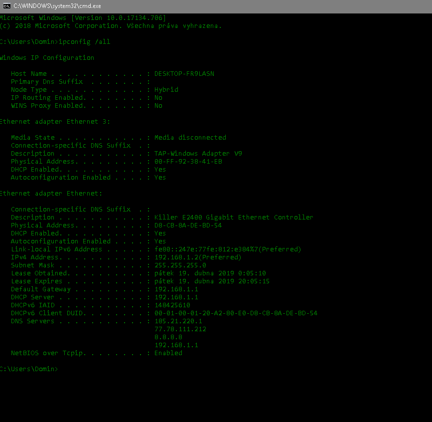 Zkusim pingplotter popřípadě když by bylo možné zkontrolovat výpis z CMD děkuji. Nevyznám se v tom vůbec ani podle návodu. Našel cca 10 adaptéru je to normální? Ping brány nešel provést z nějakého důvodu.
