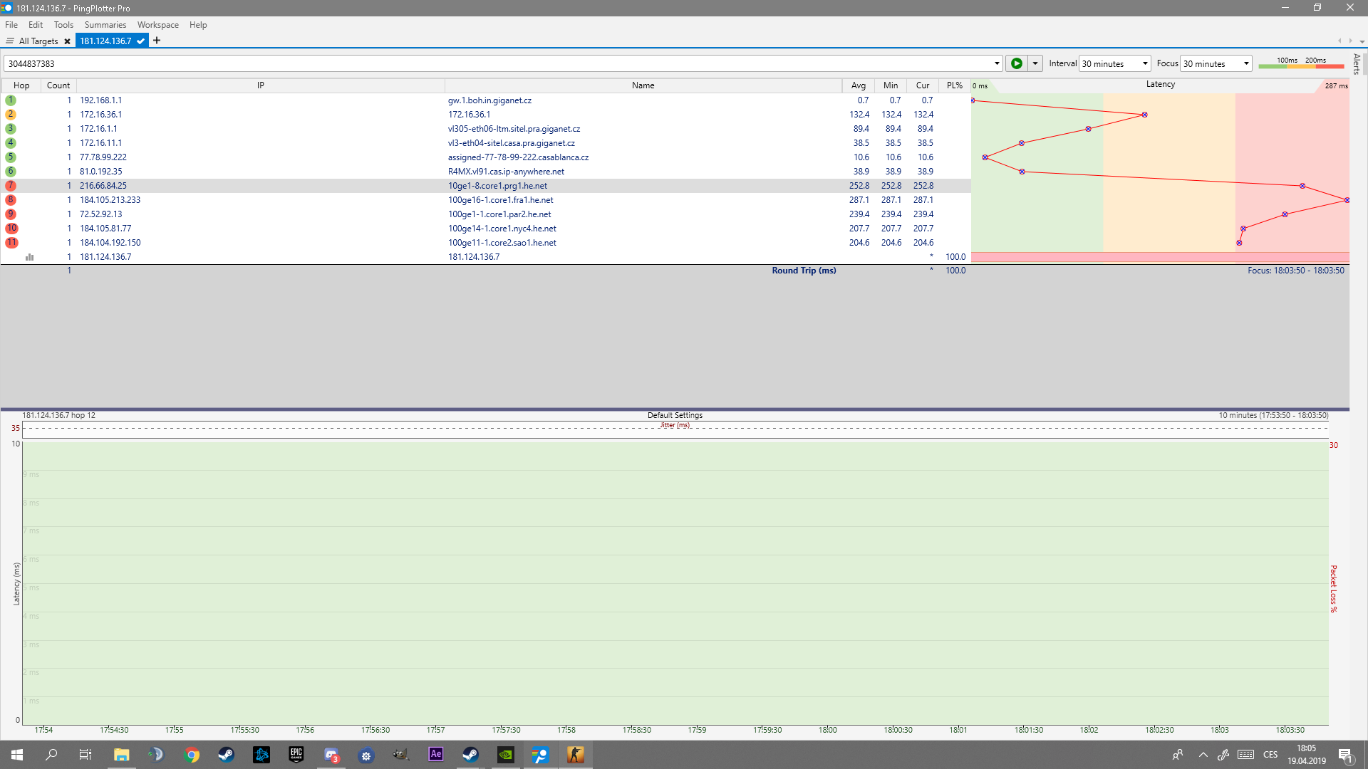 hostname: Valve CS:GO Poland Server . Tracnul jsem přes cmd ip serverů a vždy 6, 6, a při třetim skoku to skočí na 150 nebo 200 ms. Nějakej program se kterým bych to mohl monitorovat nebo nějaký nápad jak to fixnout?