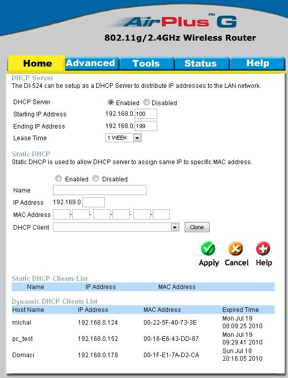 Používáš, jen se podívej na Dynamic DHCP Clients List.