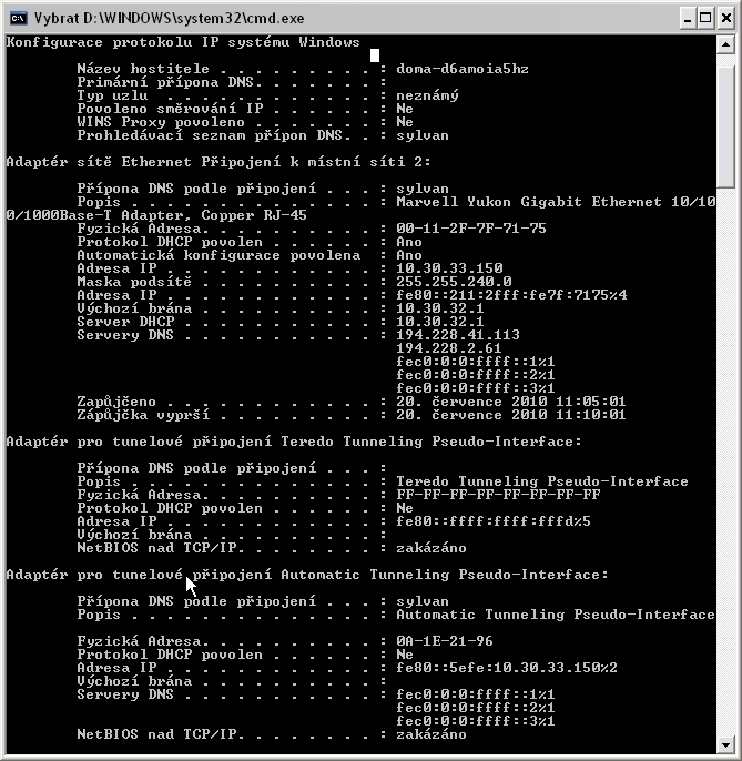 Vypadla mi jedna tečka, ip dej 10.0.0.1