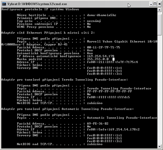 Nastavil jsem do počítače všechny hodnoty, jen u IP to ukazovalo chybovou hlášku že to není platná IP, tak jsem zadal: 10.0.01.1