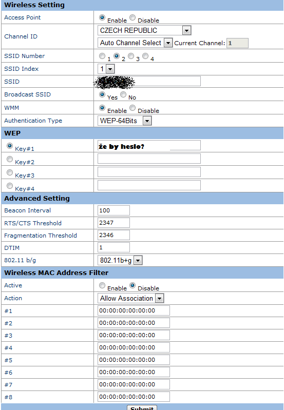 no ale když je dám všude stejný tak to fakáchtěl bych tam hodit nějaký to heslo na síť aby to fakalo, MAC filtr nechci, to když tam přijdu s nějakým jiným zařízením tak bych musel zase přes notebook povolovat MAC adresu a to je nepohodlný