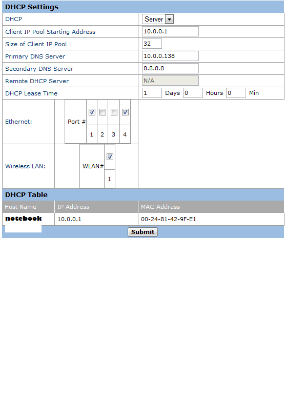 zkoušel jsem NTB, kterej je připojenej přes kabel, tak jsem odpojil kabel(teda lépe řečeno dal zablokovat síťovku) a pak jsem se ani na ten router nepřipojil :( na iP mi to tam hodí taky tu špatnou IP 169.31.x.x jak si to samo nějak vygeneruje, nastavení DHCP je nějaký chudý jak jsem tak koukal: