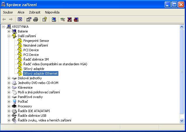 Ahoj... jsem veliký laik na PC ale dokázal jsem přeinstalovat OS na win XP. Paráda akorát zalohování ovladačů mi vůbec nic neříkalo a proto teď řeším tento problém. Kdybych se dokázal dostat na net teento problém bych vyřešil ale co se týče toho netu nevím jak se na něj mám dostat. Mám připojení kabelově přes modem HUAWEI od O2. když kouknu do správce je tam dost zařízení které ovladač nemá (viz příloha 1). Když kouknu do správce sítě nemám tam vůbec nic (viz příloha 2).