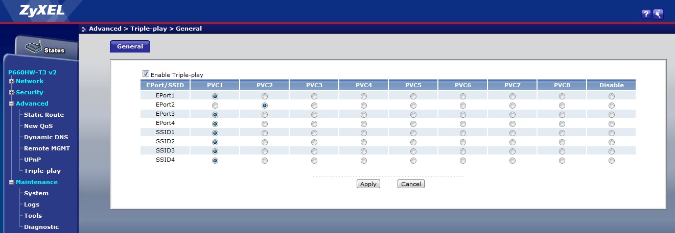 Říkal jsem si, že by se mělo nastavit tady něco, ale stejně bez výsledku. Zkusil jsem EPort3 na PVC3 a asi 15 sekund internet šel, ale pak se sekla O2TV i internet a modem se asi 2x za sebou restartoval, tak sem to vrátil na původní místo a internet a TV už funguje, ale problém trvá dál