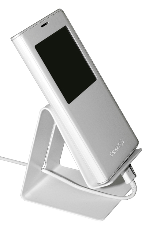 Stojan na mobil s možností vertikálního i horizontálního uložení.