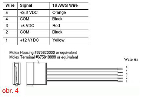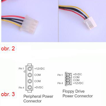 Oba konektory jsou, pokud jde o vodiče, shodné - jeden +5V, jeden +12V a dva COM (zem).