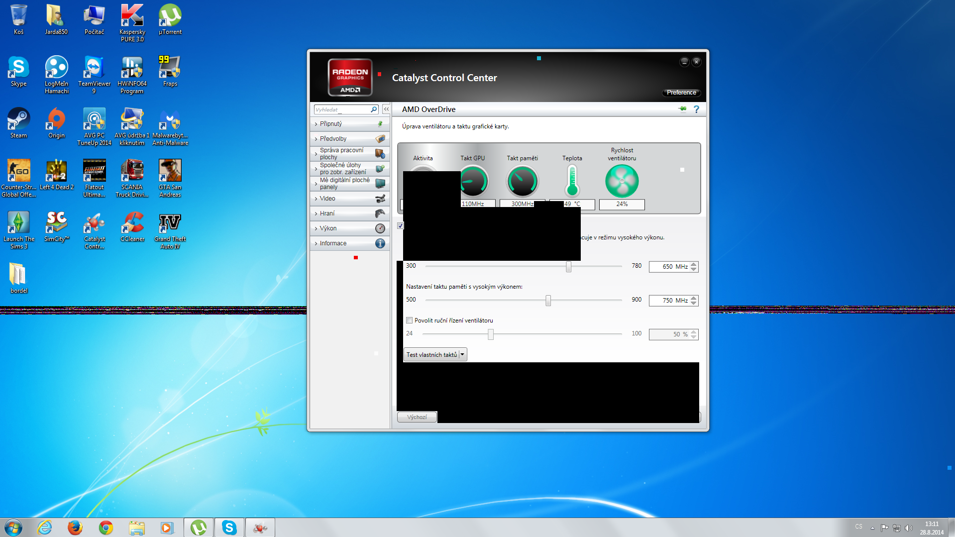 Dobrý den chtěl bych se vás zeptat mám objednáný nový PC a říkal bych si že tento starý bych někomu mohl dát ale tak aby na tom něco rozjel a přemýšlel jsem nad tím že bych to mohl trošku zkusit taknout tak jsem si stáhl AMD Catalyst šel do výkonu a nastavil trochu vyšší takty a co se stalo vidíte na obrazovce a teď nevím jak to mám dát na původní nastavení