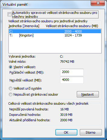 Nevím proč ale cpát pagefile na paměťovku, proč ho nedáš na disk?