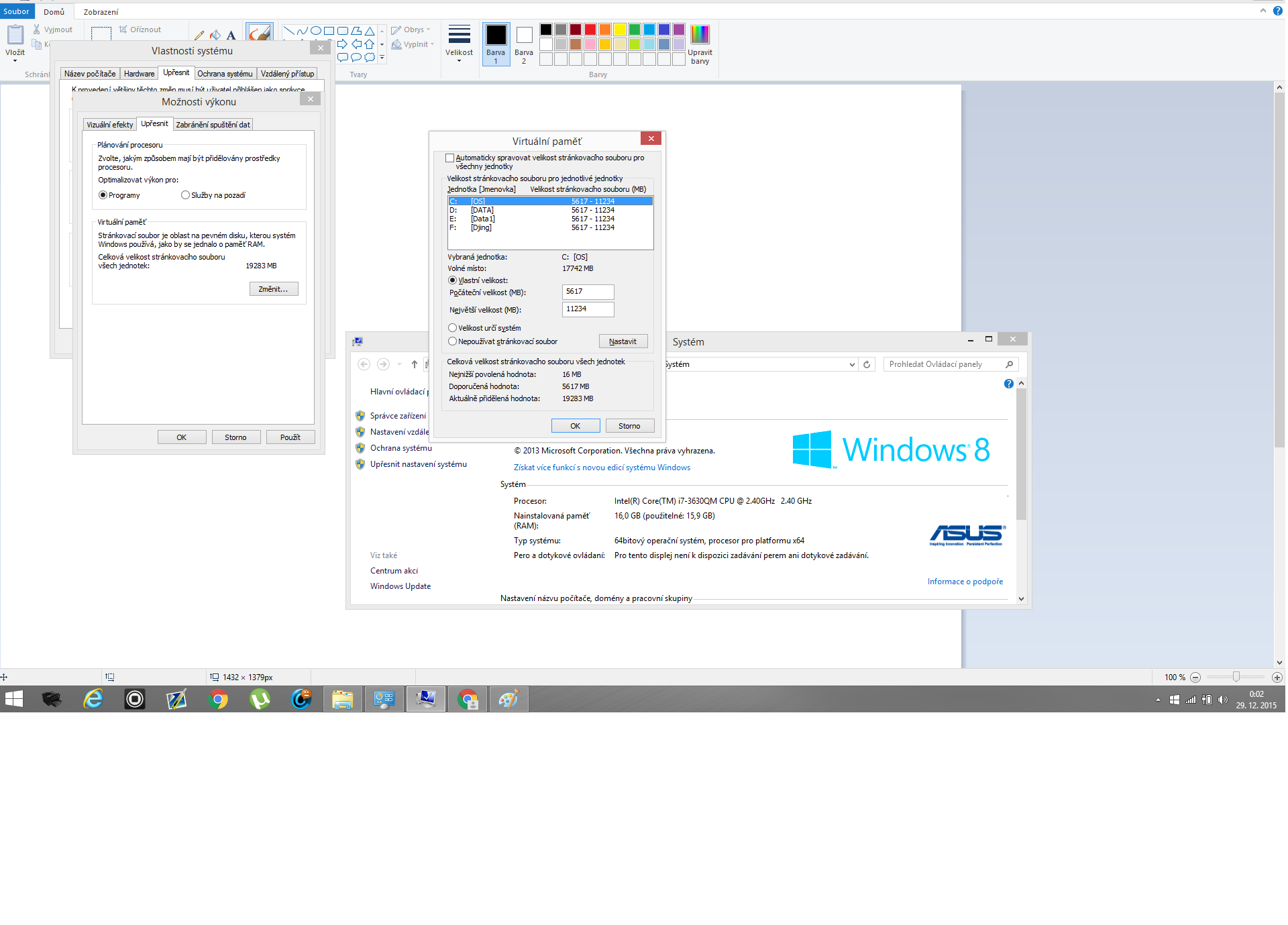 Muzes nastavit 8192 MB na disku C: a 16384 MB na tom dalsim disku.