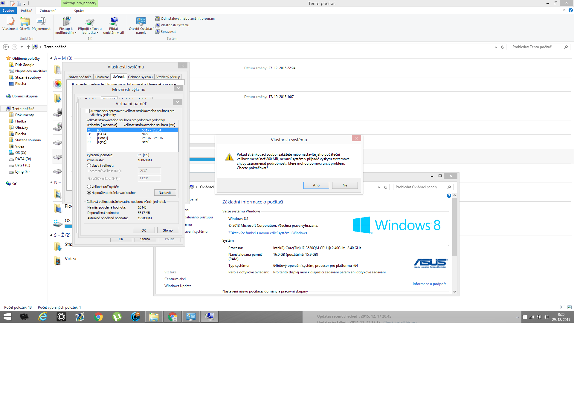 Mám to tak teda nechat udělal jsem to tak jak si řekl na C: 8192MB a na duhém E: 16384 MB