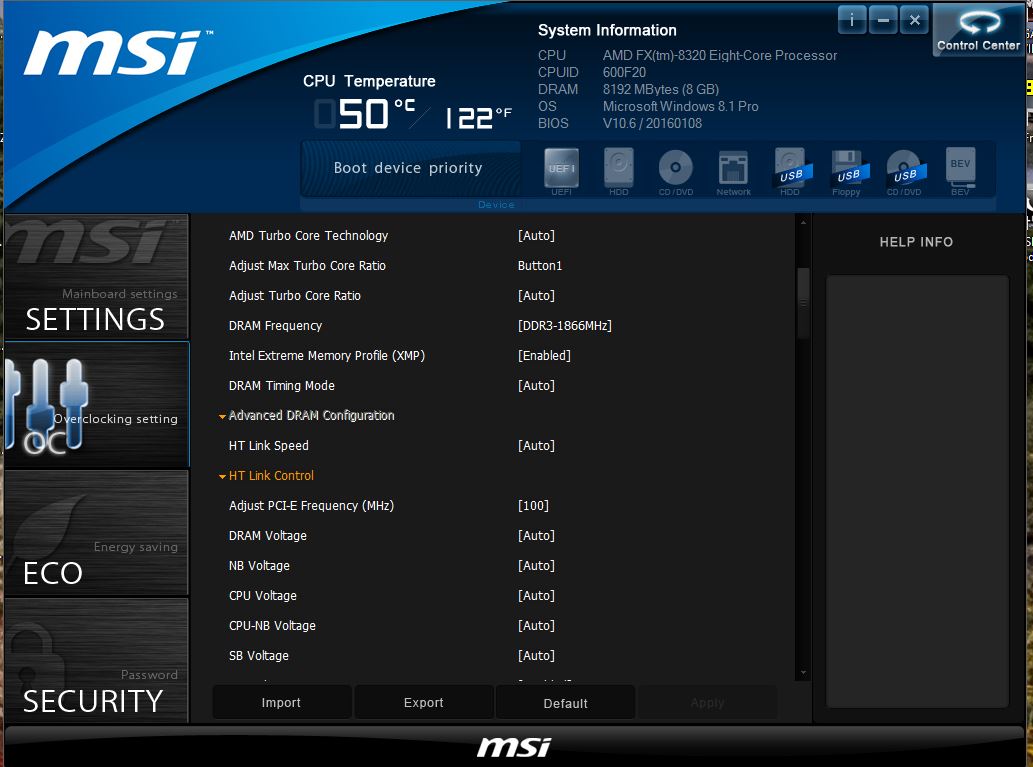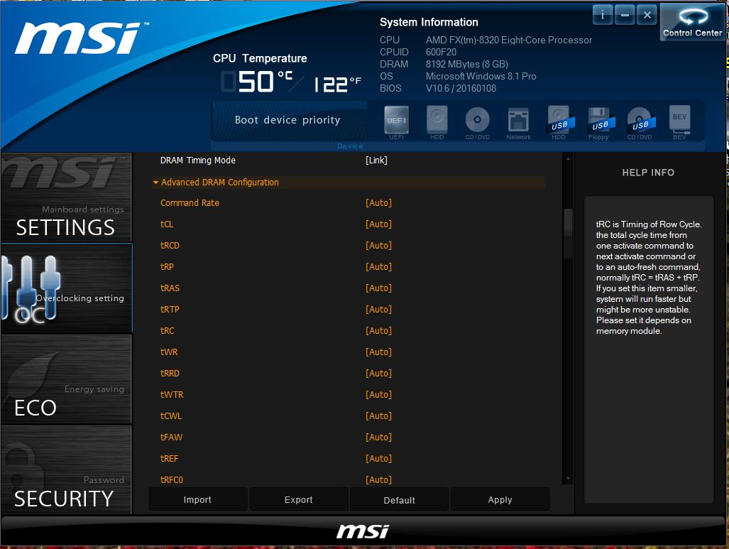 Zdravím, mám procesor FX 8320 který podporuje paměti DDR3 až do frekvence 1866 Mhz. Moje základka podporuje paměti až do 2133 Mhz. Moje paměti (8GB DUAL) jsou také až do frekvence 2133 Mhz. Jde mě o to, že teď mě frekvence paměti jede na nějakých 1333 Mhz, samozřejmě bych chtěl aby jeli na maximum což v mém případě může být těch 1866 Mhz co zvládne procesor. Jelikož základka a RAM by s tímto problém mít neměli takže jsem limitován procesorem. V Biosu mám vše na Auto, samozřejmě když změním DRAM Frequency z Auto na 1866 Mhz a dám restart, tak paměti pořád běži na 1333 Mhz, myslím si že je to proto, protože mám nastavené Dram Timing Mode na Auto, z toho důvodu si to nastavení časovaní veme z SPD. Kde mám 4 defaultní nastavení, předposlední je právě to moje na který to běží ( 1333 Mhz ) a to poslední je pro 2133 Mhz. To ale nemůžu použít kvůli procesoru. Takže bude asi nutné to časování udělat manuální pro 1866 Mhz. Proto bych se chtěl zeptat co všecko v tom biosu musím změnit a na jaké hodnoty aby to vše fungovalo jak mělo? Třeba kde nastavím tu hodnotu FSB:DRAM ? Tu sem v biosu nikde nenašel, nebo se změní sama? Já pouze budu měnít CL,tRCD,tRP,tRAS,tRC a zbytek nechám na Auto v bisou? V příloze dávám veškěré informace z CPU-Z . Děkuji všem za užitečné rady.