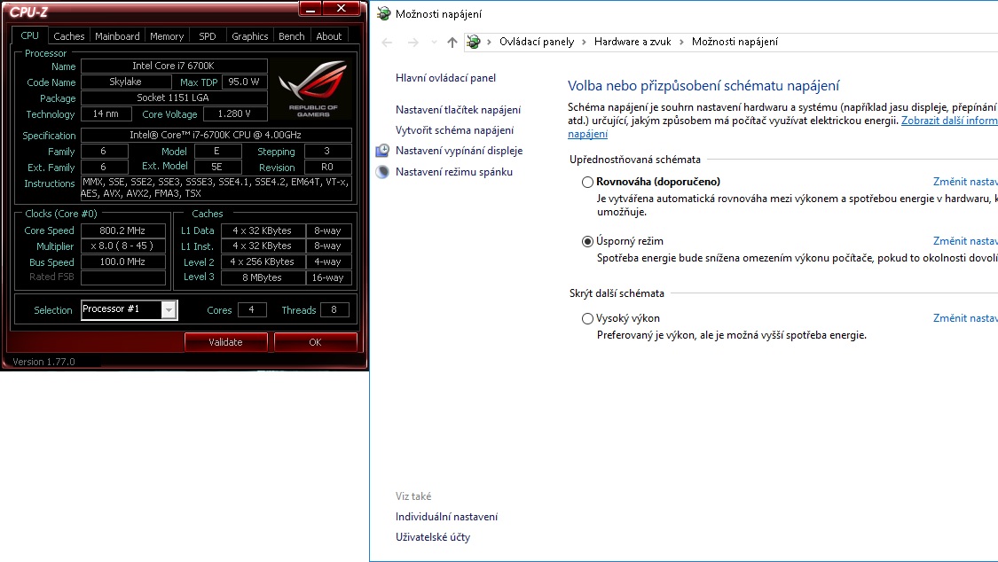 CPU-Z - nastaven úsporný režim
