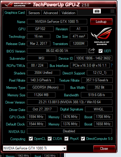 MSI GTX 1080Ti Gaming X default + i7 8700K@5GHz