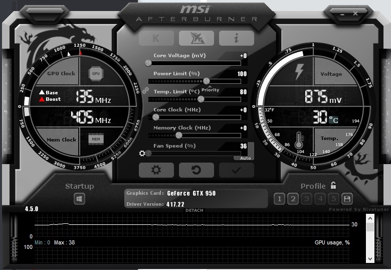 Stáhl jsem si MSI Afterburner a asi jen potřebuji vědět hodnoty na které jednotlivé věci mohu zvýšit.