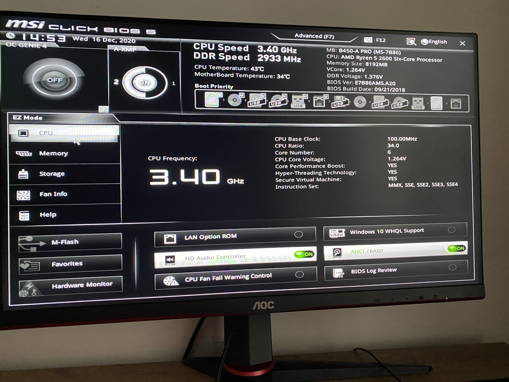 Tady mám BIOS, nejde mi screen skrz americkou klávesnici. Tak foceno na iPhone.