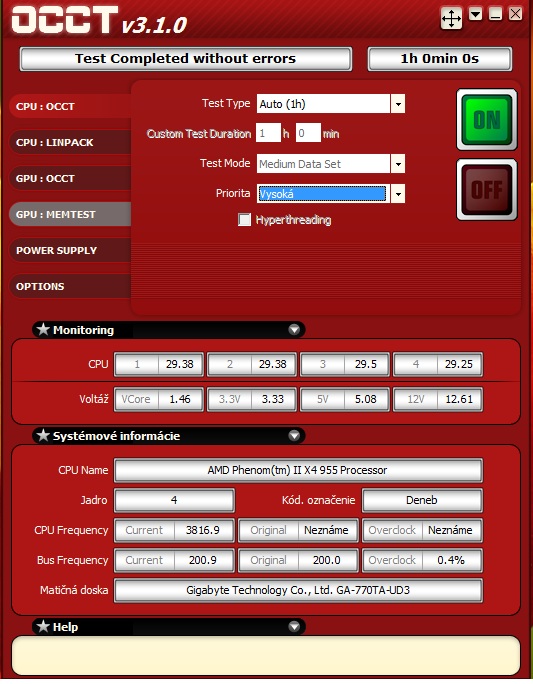 Tak tě potěším. Během zkoušek těch her mi to dvakrát spadlo tak jsem to dal na 3700hmz napětí už nevím a uvidím. Takže se mi zdá, že ty stabilizační testy jsou na draka. Během her nemyslím během hraní, ale v jednom případě jsem psal příspěvek po hraní hry a ve druhém jsem zapl hru DIRT2.
