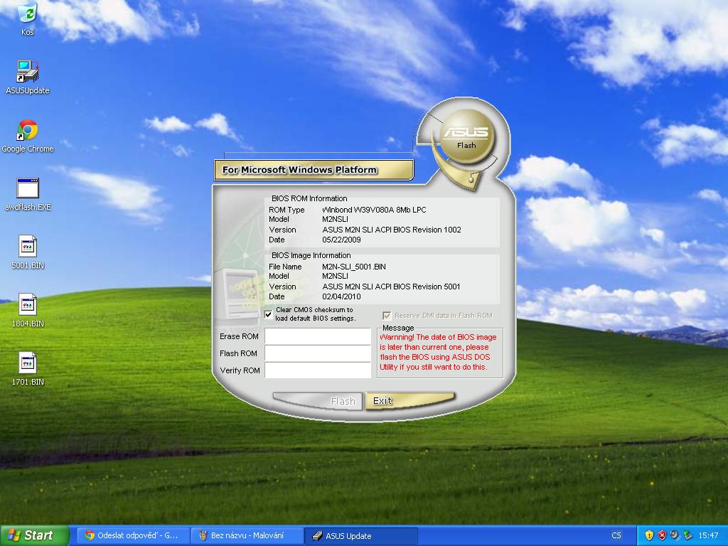 Ještě můžeš ztáhnout ASUS Update Utility http://www.freewarefiles.com/ASUS-Updat ... 17619.html a flash biosu přes windows ale přes dos je to bezpečnější ikdyž tato utilitka mne ještě nezklamala