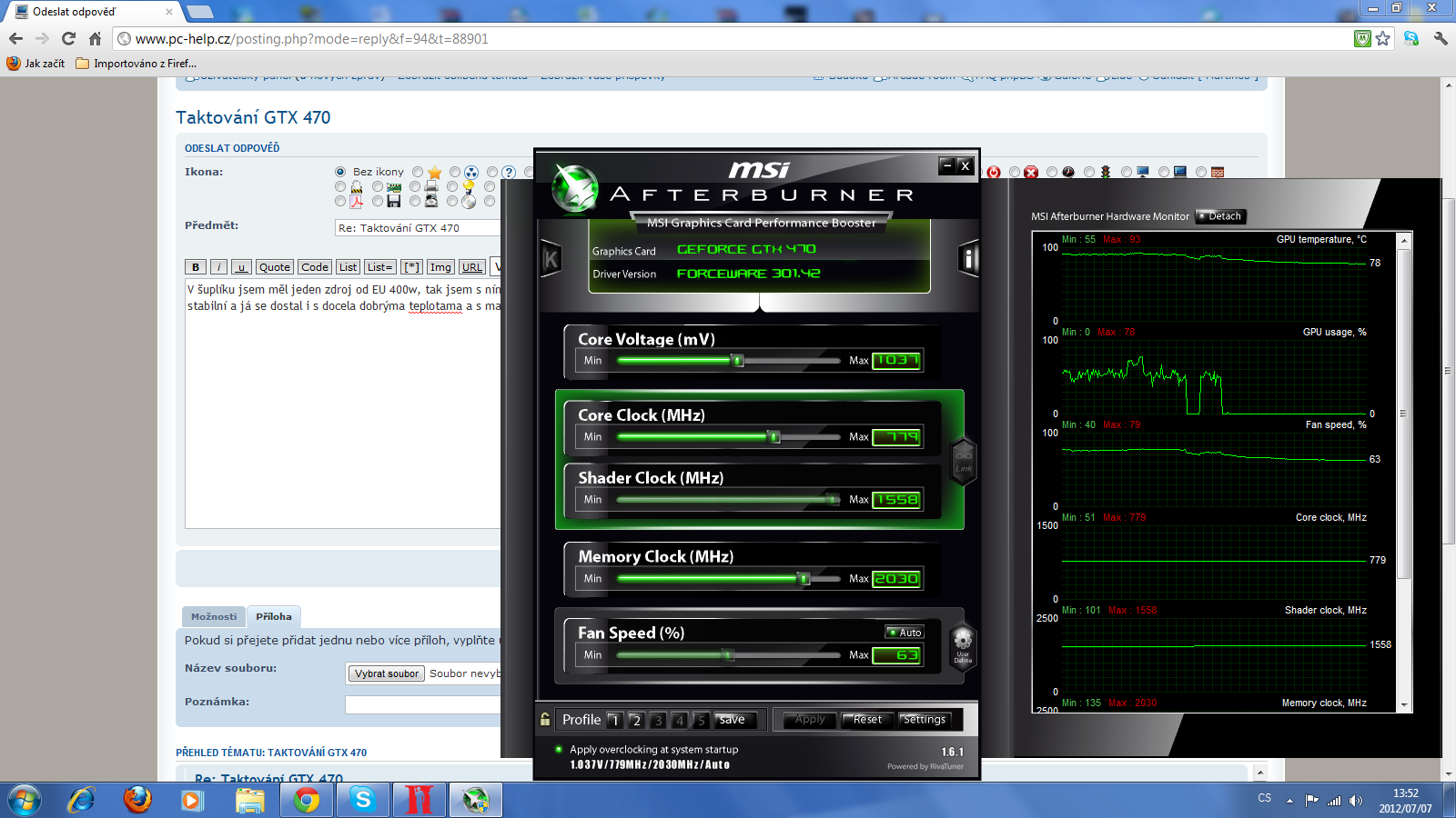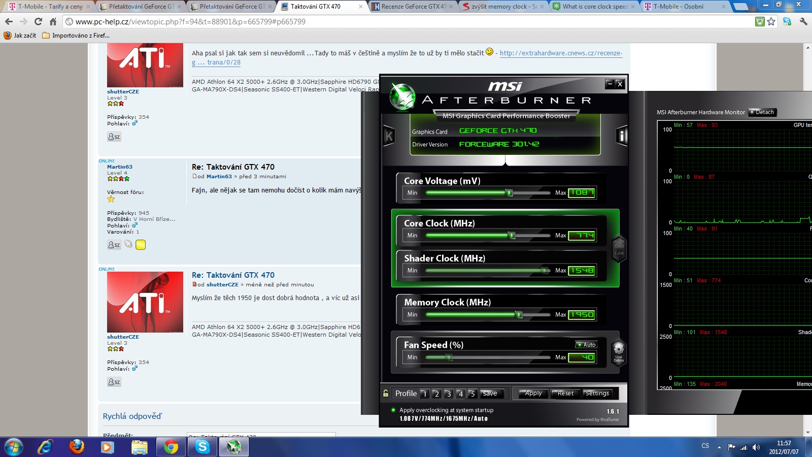 A teplota? Koukal jsem ,že Afterburner měl u max hodnoty 93C což už je dost ...No nic já už fakt musím , tak dyžtak zítra ..