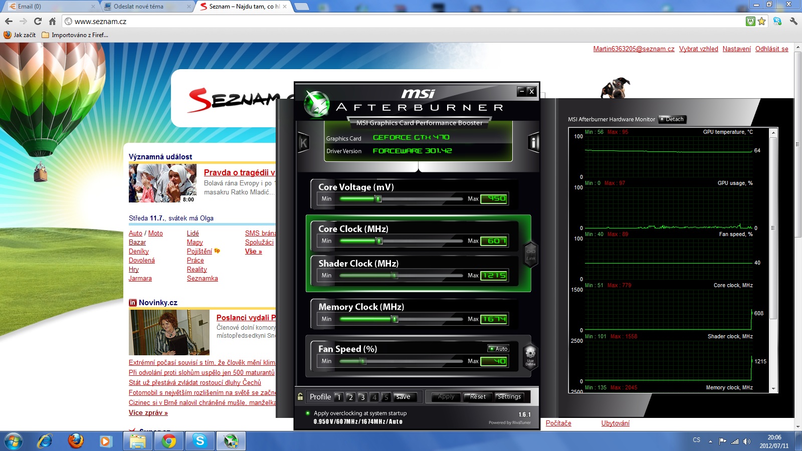 Zdravím, nataktoval jsem svoji grafiku GTX 470 a od nějakého zkušenějšího taktéra bych rád věděl jestli jsem dohnal GTX 480, nebo GTX 560 TI. Koupil jsem si i výkonnější chladič. (Ty menší takty, co sem dám na screenu jsou normální takty a ty větší jsou nataktované). Ale to je snad jasné
