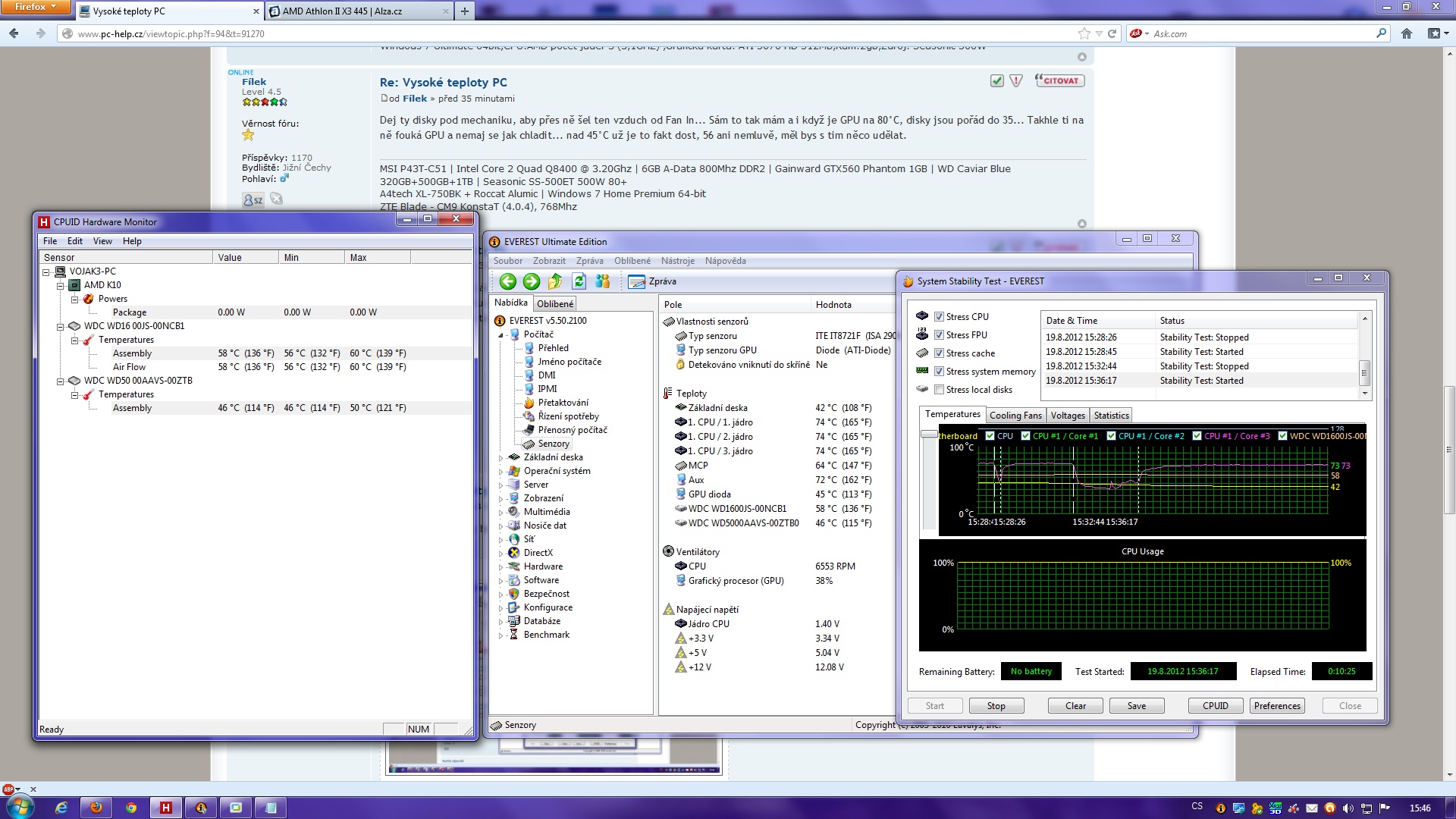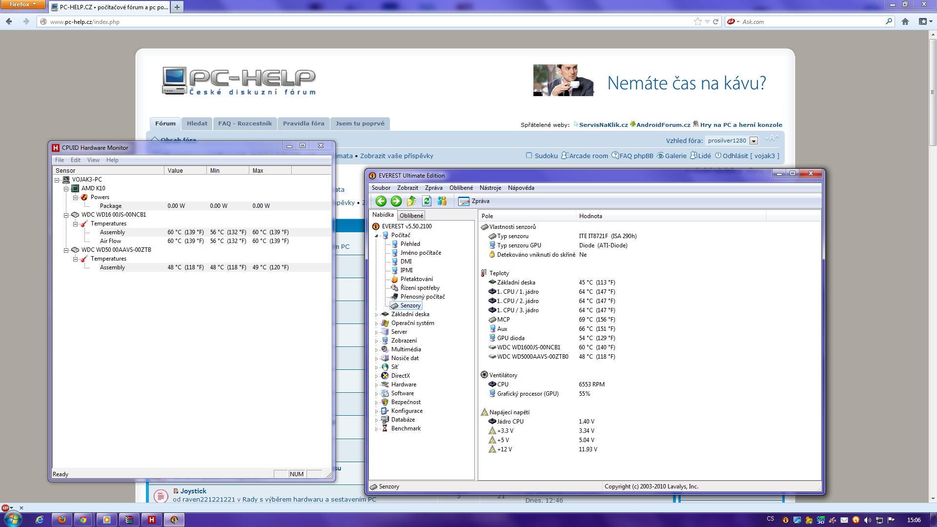 Dobrý den zdásemi že mam vysoké teploty PC: CPU de až na 66°C a ventilátor to tahá někdy až do MAXIMA 6750RPM (boxovanej), základní deska má okolo 45°C