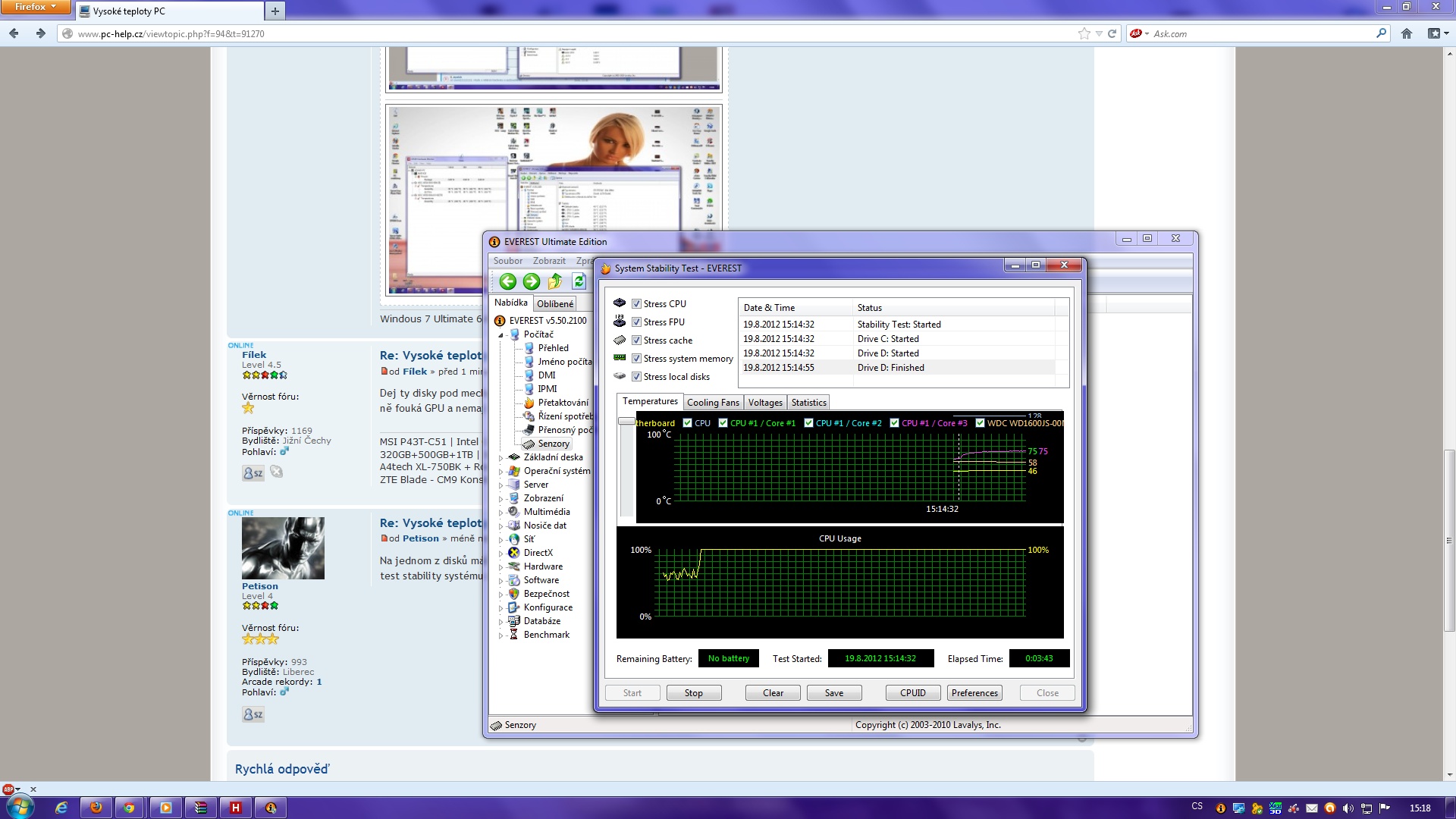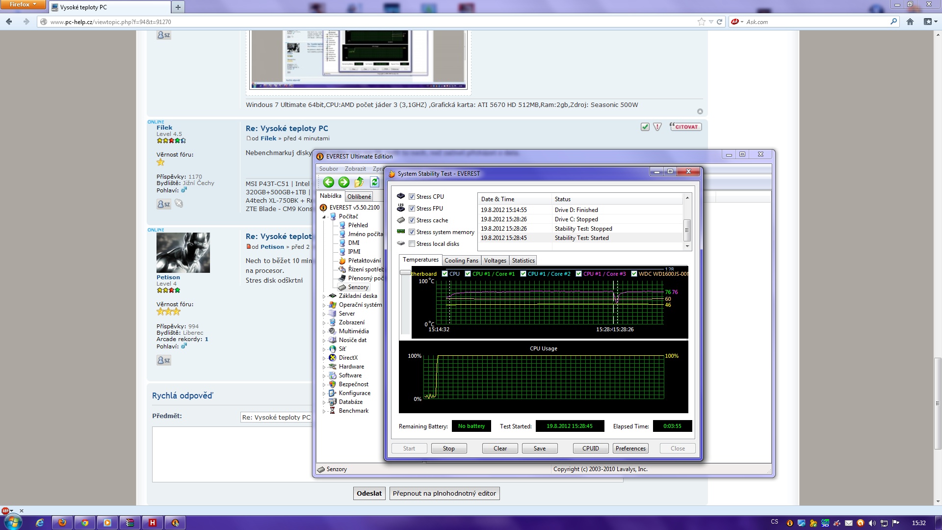 Nech to běžet 10 minut.Zatím po třech minutách CPU 75 a to je hodně.Pokud by to větráky výrazně nepomohli tak bys musel koupit lepší chladič na procesor.