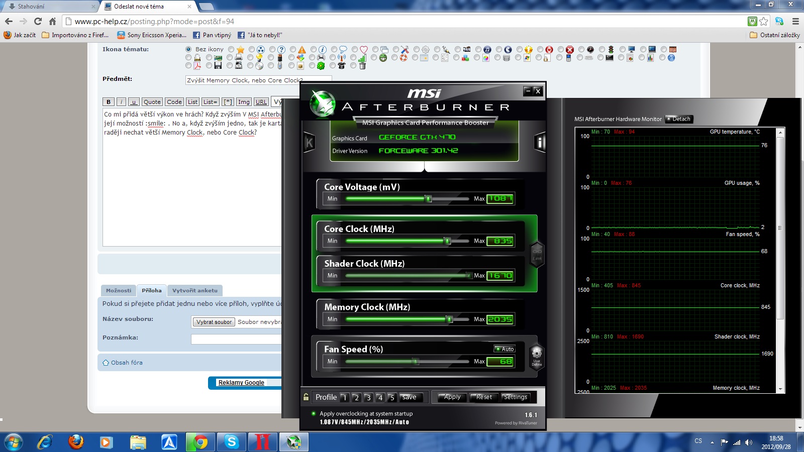 Re: Zvýšit v MSI Afterburneru Memory Clock, nebo Core Clock? Vyřešeno