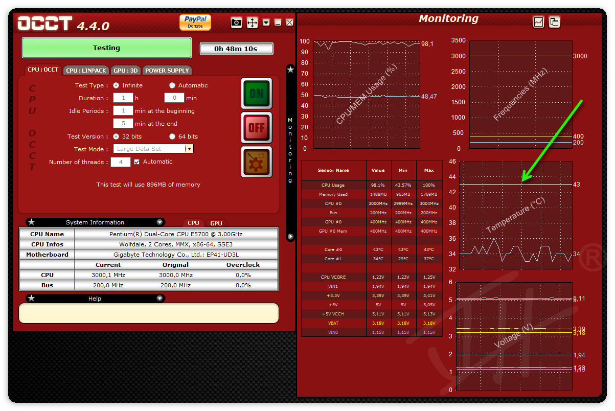 Dobry den. Prosim vas potreboval by som poradit ohladom procesora Intel Pentium D-Core Inside E5700,ktory som si dnes kupil a vymenil miesto stareho slabsieho. Jedna sa o to,ze vsetko funguje perfektne az na ukazovatel teploty CPU. Jedno jadro ma stale tu istu teplotu v klude ,aj v maximalnej zatazi a v akomkolvek case. Druhe jadro je podla mna v poriadku,nakolko telota je premena a kolisava podla zatazenia cpu.Teraz neviem ci je to v poriadku,alebo nie.Urobil som niekde chybu pri montazi procesora,alebo nieco treba niekde nastavit,napriklad v biose ? Teplotu procesora prikladam aj na obrazkoch,kde to jedno jadro ma stale 43°C. Za kazdu radu vam vopred velmi pekne dakujem. Este doplnim,ze som pouzil teplovodivu pastu AC MX-4 a chladic je AC Freezer 7 Pro. MB je Gigabyte.