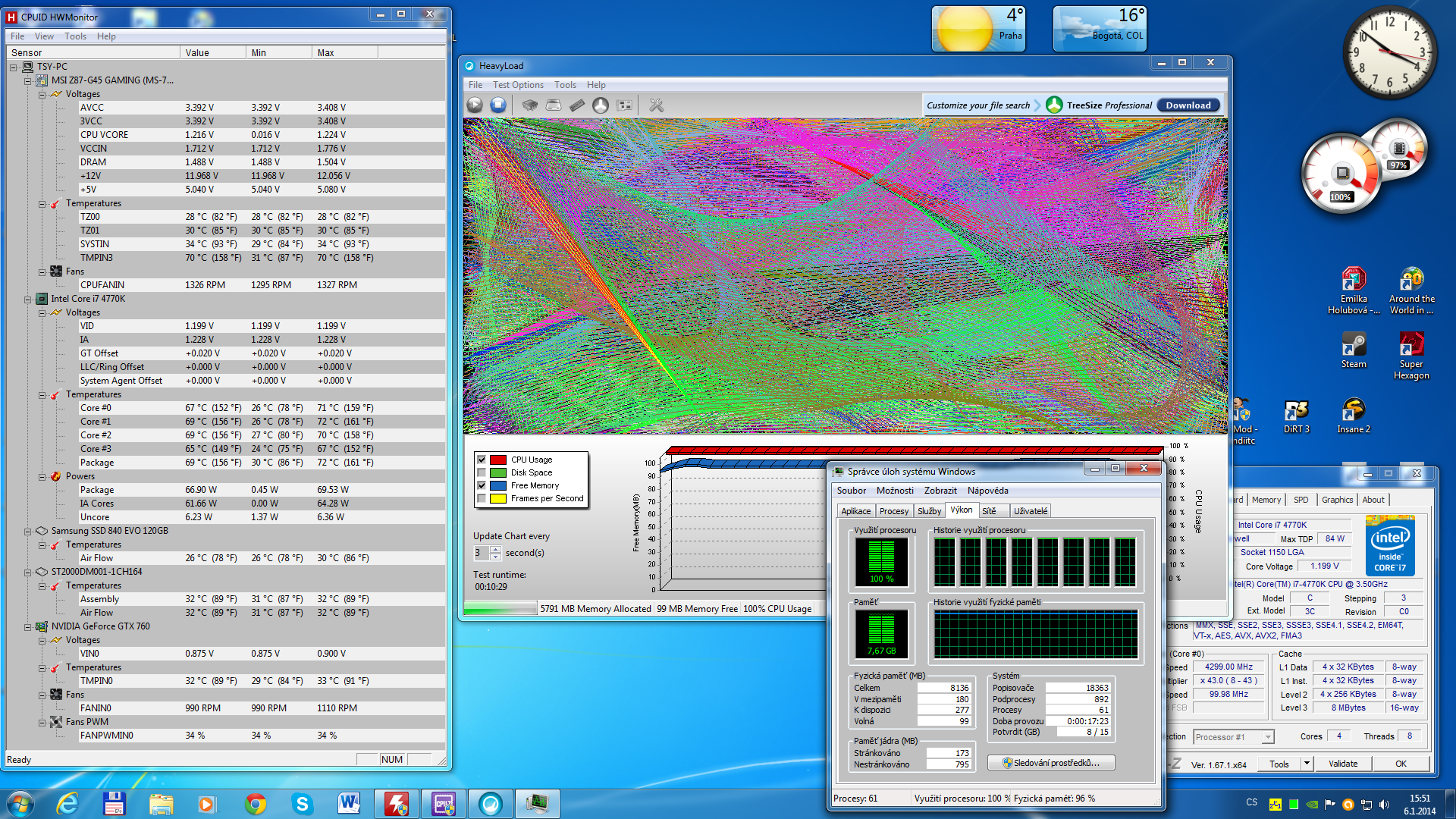 Tak zvolil jsem adaptive mod, dal napětí na 1,2V a CPU je stabilní, teploty do 70C (viz obrázek) můžete zkontrolovat jestli je vše ok. Ale skutečné napětí je 1,216V jak ukazuje HWMonitor. (Na fotce test běžel jen 10 minut, ale poté jsem ho nechal na 2 hodiny a projel).