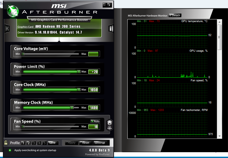 No, nejspíše bych jí prozatím nechal na výkonu 270x. (Pokud tedy už je, když jsem zvedl jen Core Clock na 1050Mhz, s ničím jiným jsem si nehrál, jelikož nevím, co k čemu je.) Takhle... Je s tím, co jsem upravil na úrovni 270x?